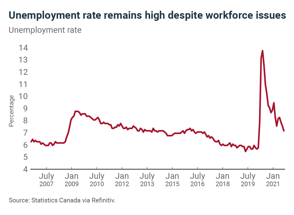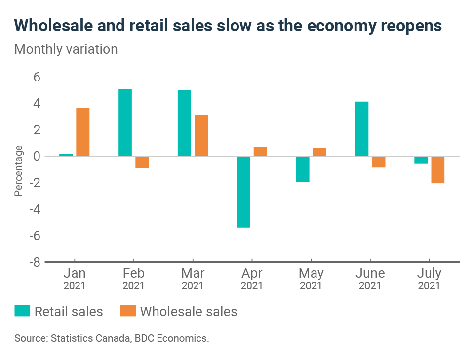 – The full reopening of the Canadian economy (with a few exceptions) is creating a new dynamic. The restaurant and hospitality sectors are getting busier, while other industries, which were doing well at the beginning of the recovery, are now slowing down. It’s the swing of the pendulum and a step closer to a new reality for the Canadian economy.