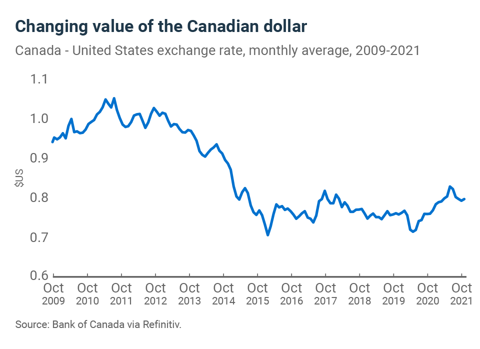 The Canadian dollar fell from US$0.80 in early September to less than US$0.78 about 20 days later. This drop was mainly due to the uncertainty that was generated by the federal election. Since Election Day, the loonie has effectively resumed its upward trend and is starting the fourth quarter just above 79 cents. The most recent price increases in energy markets, including oil, could push the Canadian dollar higher, but the rising uncertainty in the U.S. is mitigating this risk so far. The balance of these effects suggests that the CAD will remain stable against the USD at around 0.80.
