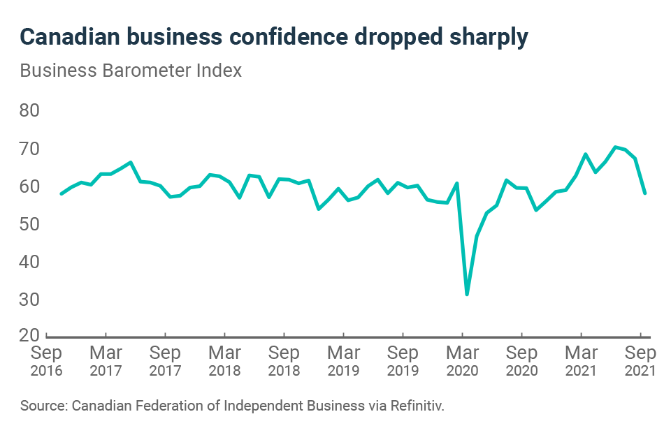 Uncertainty in Canada rose following the start of the federal election campaign in mid-August. According to the Canadian Federation of Independent Business, this was the main reason for the sharp drop in the business barometer index in September. Confidence among Canadian business leaders dropped nearly 10 points in a single month. The index fell from 67.1 in August to 57.8 in September. This is the worst result for the index since last November when an effective vaccine for COVID-19 was still unannounced and the country was dealing with the second wave of the virus.